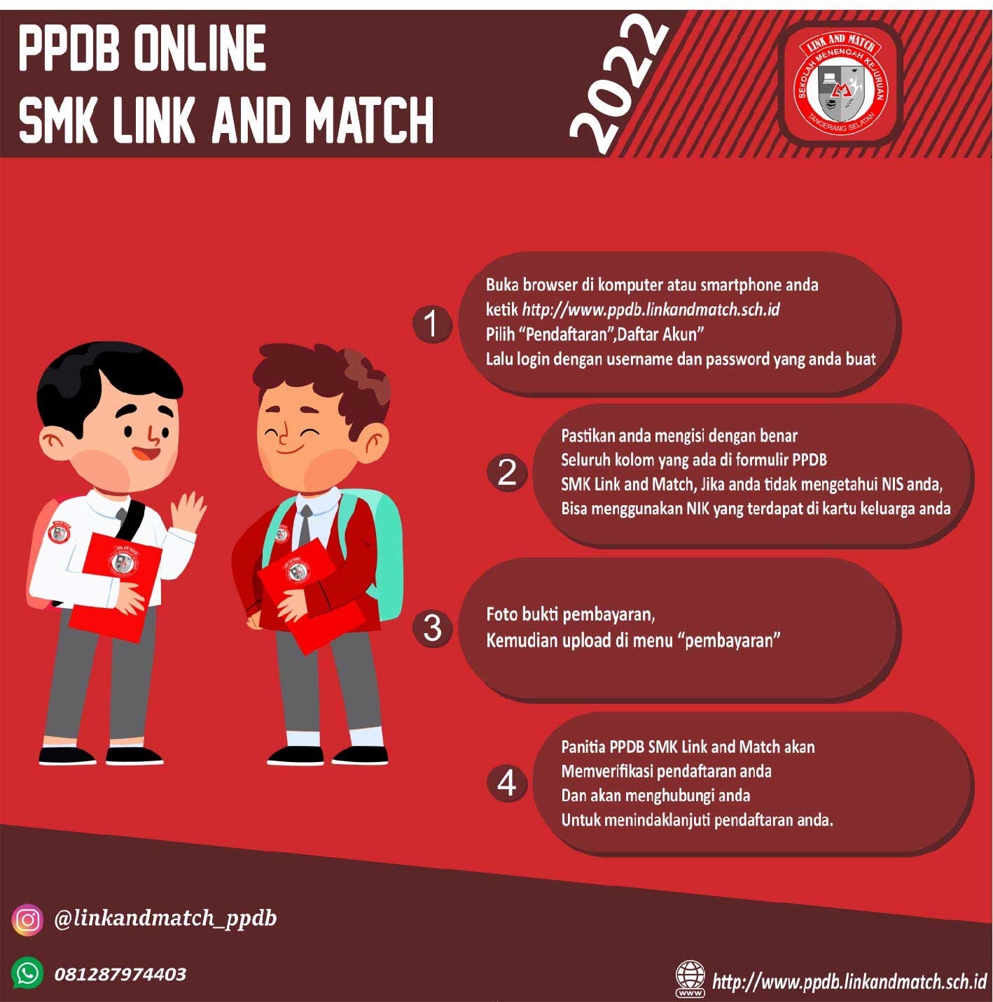 Segera daftarkan diri anda di SMK Link And Match dan raihlah cita-cita yang kamu inginkan karena masa depan kamu dimulai dari sekarang.